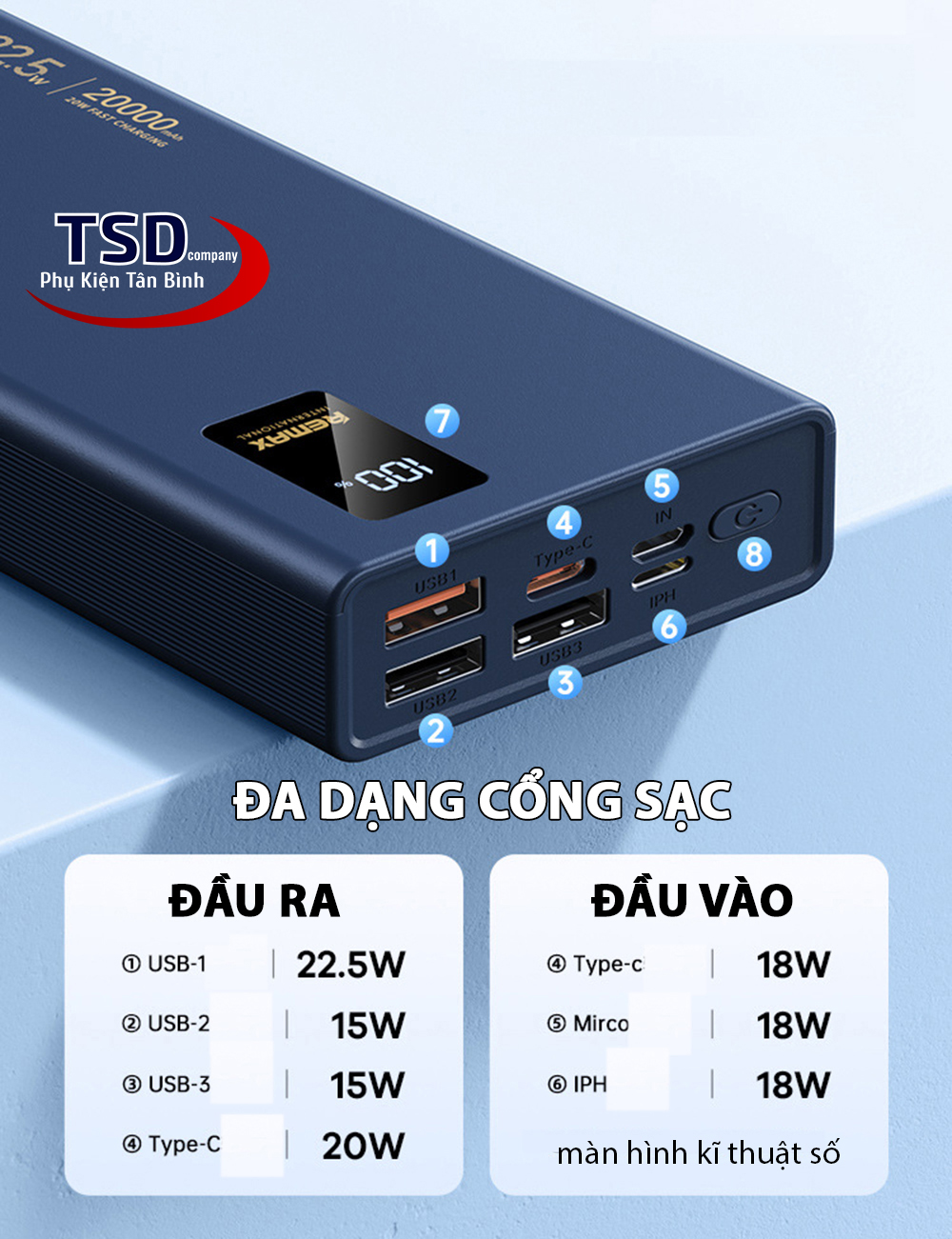 - Pin Dự Phòng Remax RPP-267 20000mAh Chính Hãng Sạc Nhanh 22.5W Đa Năng