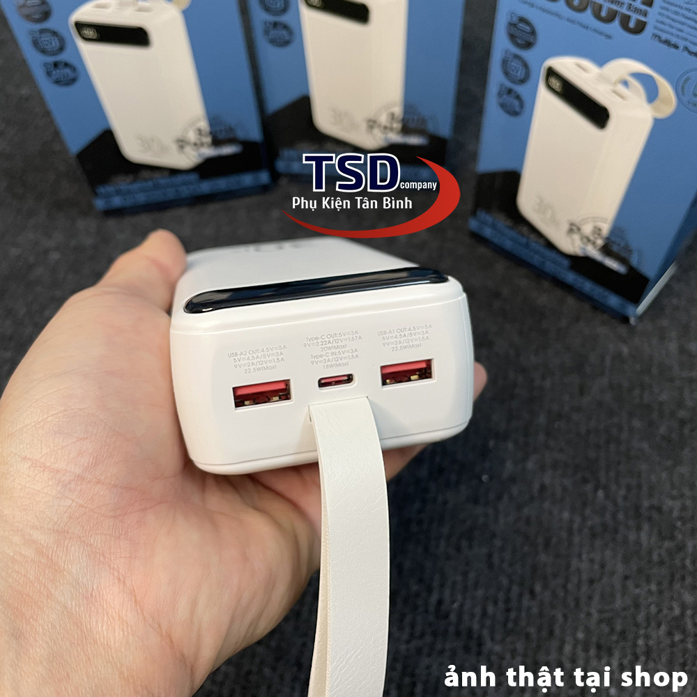 - Không chỉ cho dòng điện đầu ra lớn hơn, điều quan trọng ở cục pin sạc dự phòng 30 000mAh này chính là hệ thống chip thông minh, tự động điều chỉnh dòng điện đầu ra dựa vào thiết bị kết nối vừa đảm bảo tốc độ sạc nhanh, vừa đảm bảo an toàn pin của thiết bị.