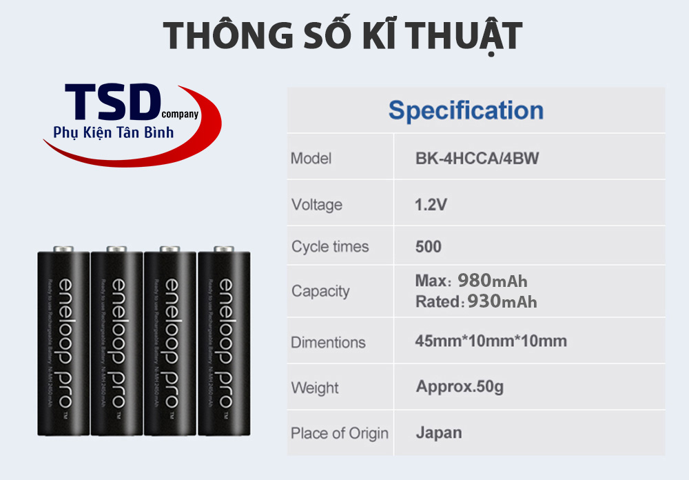 - Dòng pin sạc AAA PANASONIC ENELOOP Pro 980mAh ( BK-4HCCA/4BW ) được Panasonic cho ra đời để hỗ trợ cho các thiết bị điện tử cần nguồn năng lượng cao, mạnh và thường xuyên như máy chụp hình, đèn flash, máy đo huyết áp, đèn pin, remote, radio, ….