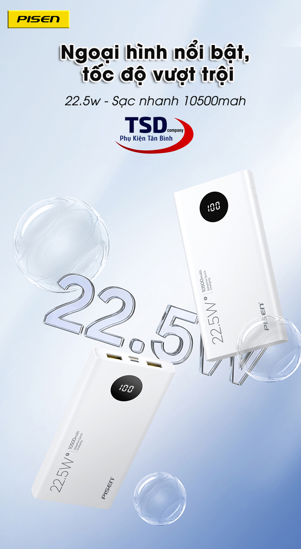 Tên sản phẩm: Pin Sạc Dự Phòng Pisen TS-D314 10500mah 22.5W