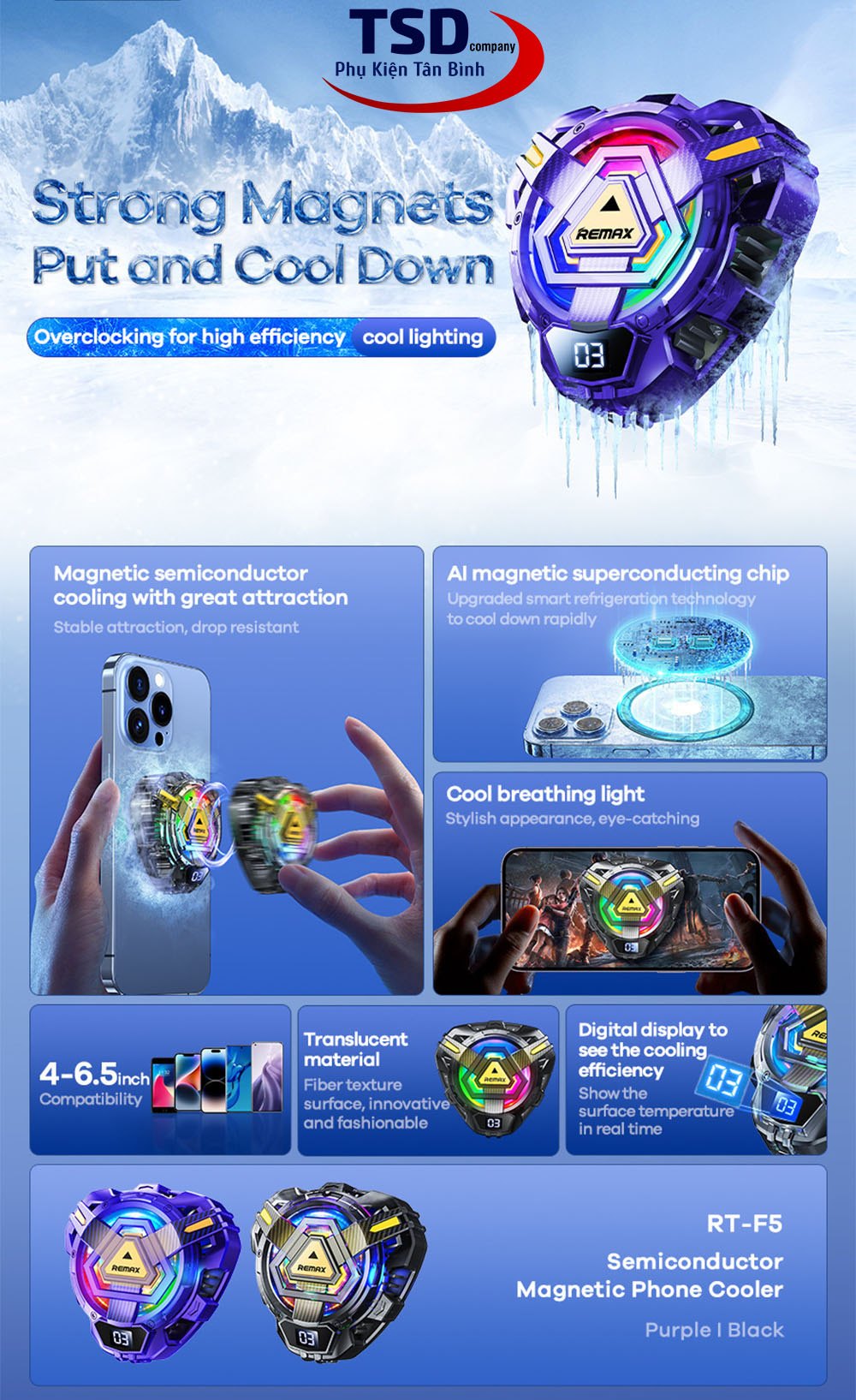 Sò Lạnh Tản Nhiệt Siêu Nhanh Cho Điện Thoại Remax F5 Chính Hãng