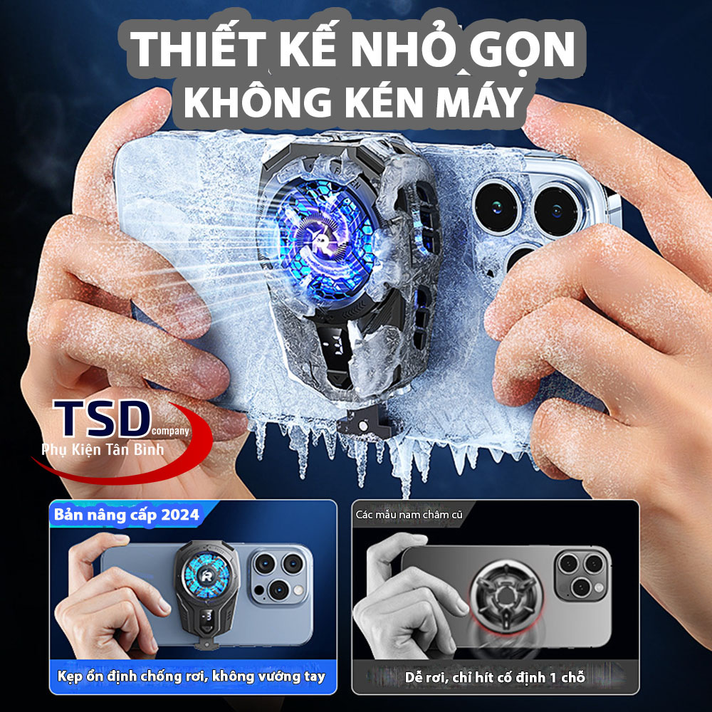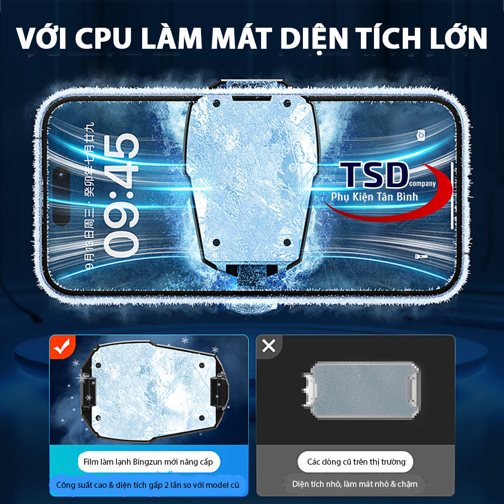 - Hệ thống làm mát từ tấm kim loại ở phần tiếp xúc với điện thoại có khả năng làm lạnh ngay tức thì giúp điện thoại không bị nóng khi chơi game, từ đó kéo dài tuổi thọ của điện thoại và pin.