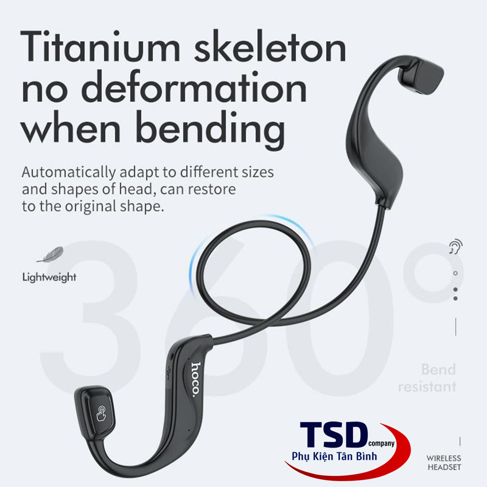 - Tai nghe Bluetooth thể thao công thái học Hoco ES50 sở hữu thiết kế nhỏ gọn với trọng lượng chỉ 16g, kiểu dáng ôm sát khung viền tai mà không cần nhét. Thay vào đó, bạn chỉ cần móc vào tai là có thể cố định tai nghe dễ dàng. Dù có đeo tai nghe trong thời gian dài đi nữa thì bạn cũng sẽ không cảm thấy đau nhức, khó chịu như các loại tai nghe nhét thông thường.