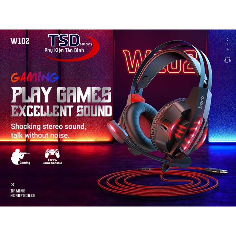 Tai Nghe Chụp Tai Hoco W102 Chính Hãng Có Led Hỗ Trợ Mic Đàm Thoại