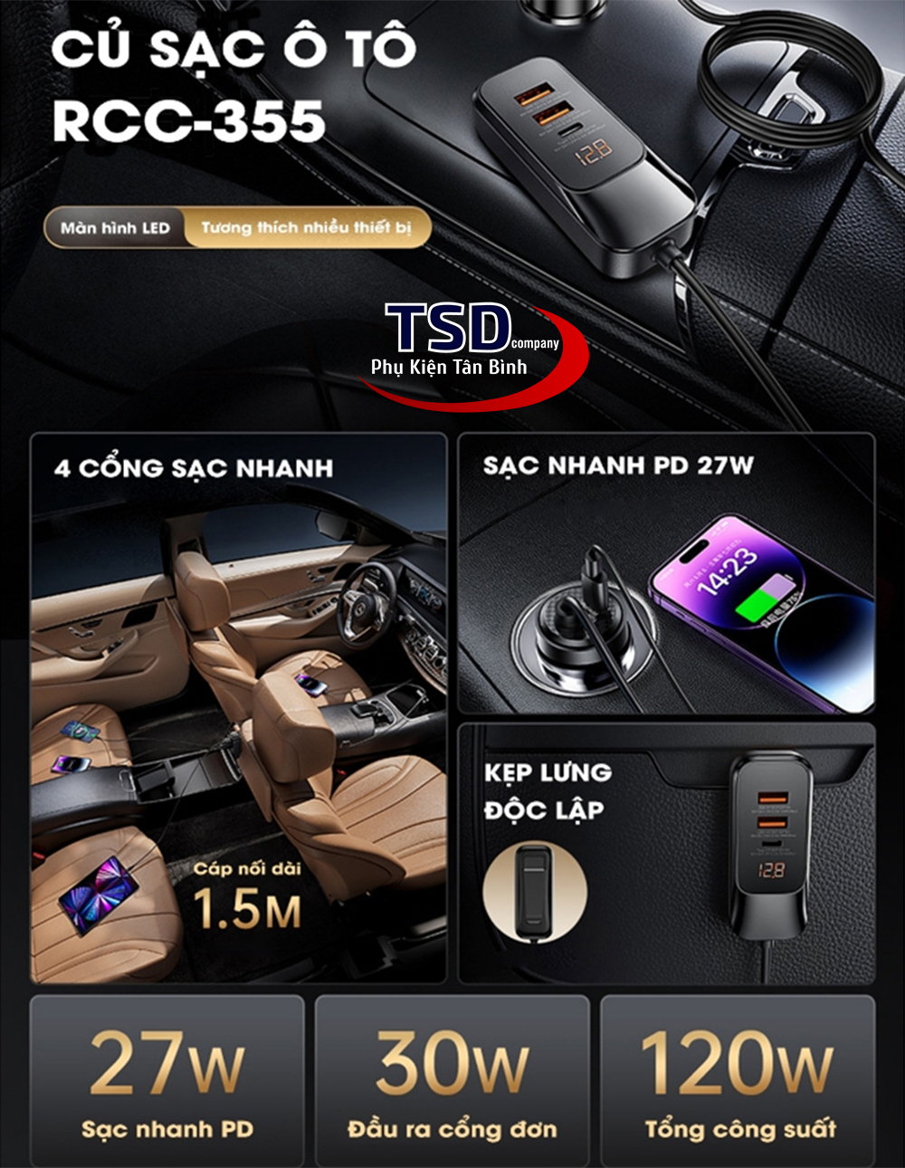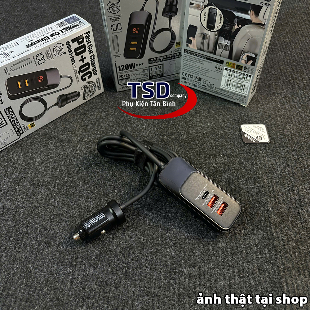Tẩu sạc nhanh ô tô 4 cổng 120W Remax RCC-355 là một giải pháp sạc đa chức năng và tiện lợi cho người dùng ô tô. Với khả năng sạc nhanh, đa cổng kết nối, đảm bảo an toàn, chắc chắn là phụ kiện không thể thiếu để cung cấp năng lượng các thiết bị điện tử trong xe ô tô nhanh chóng và hiệu quả.