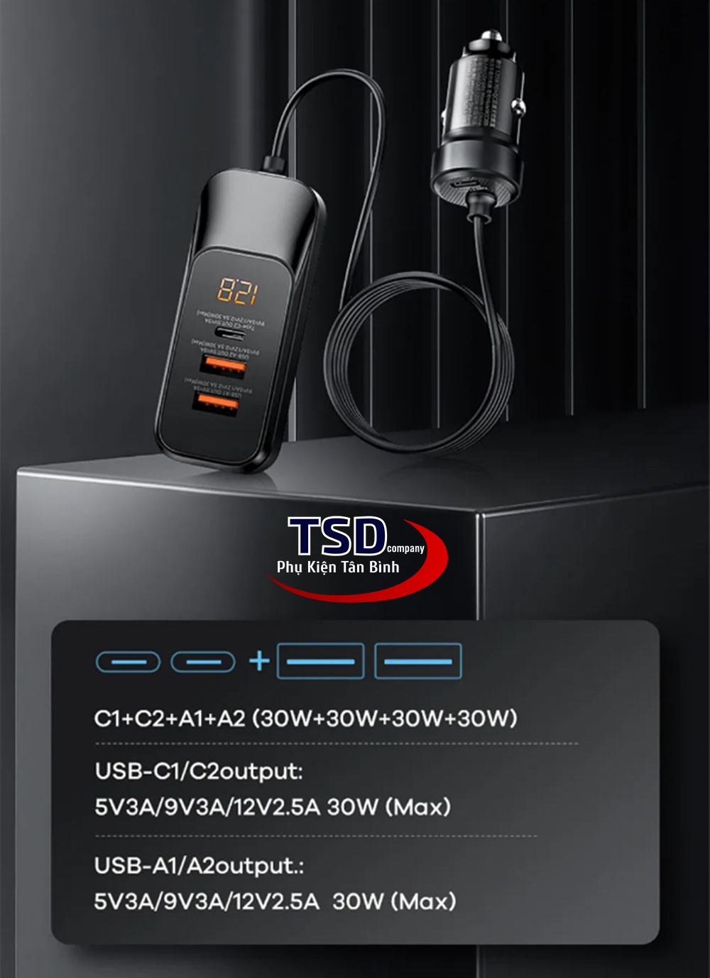 Cổng USB 2: 5V - 3A, 9V - 3A, 12V - 2.5A (30W Max)