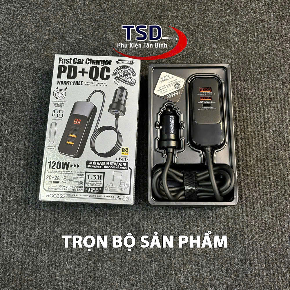 Tẩu sạc nhanh ô tô 4 cổng 120W Remax RCC-355 |