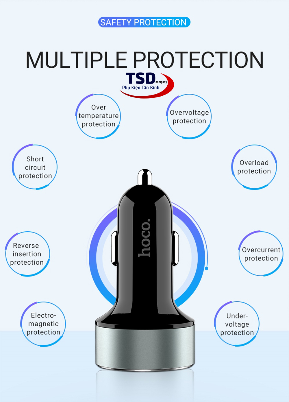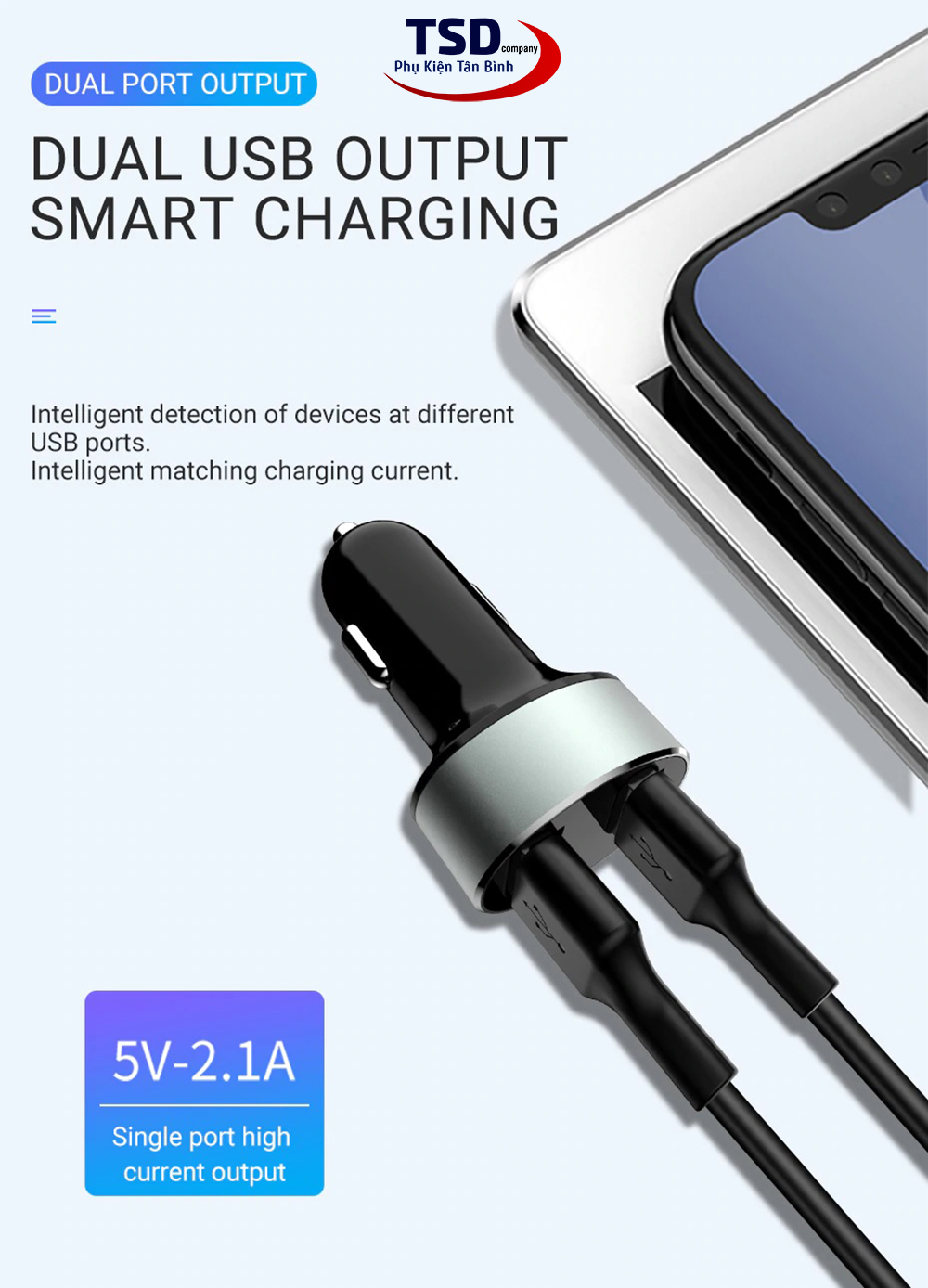 Hoco Z26 được trang bị đến 2 cổng USB lấy điện. Mỗi cổng cho dòng ra lớn lên đến 2.1A. Sạc vẫn được trang bị công nghệ an toàn như mạch bảo vệ quá dòng, quá áp, vì thế nó giúp rút ngắn thời gian sạc và đảm bảo an toàn cho các thiết bị và cả hệ thống điên trên xe.