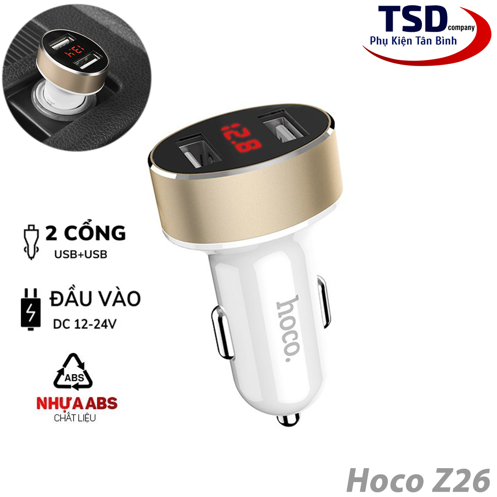 Tẩu Sạc Xe Hơi 2 Cổng USB Hoco Z26 Chính Hãng