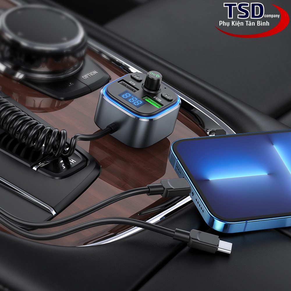 - Hoco E74 có thể kết nối với loa oto bàng sóng FM qua đầu thu Radio.