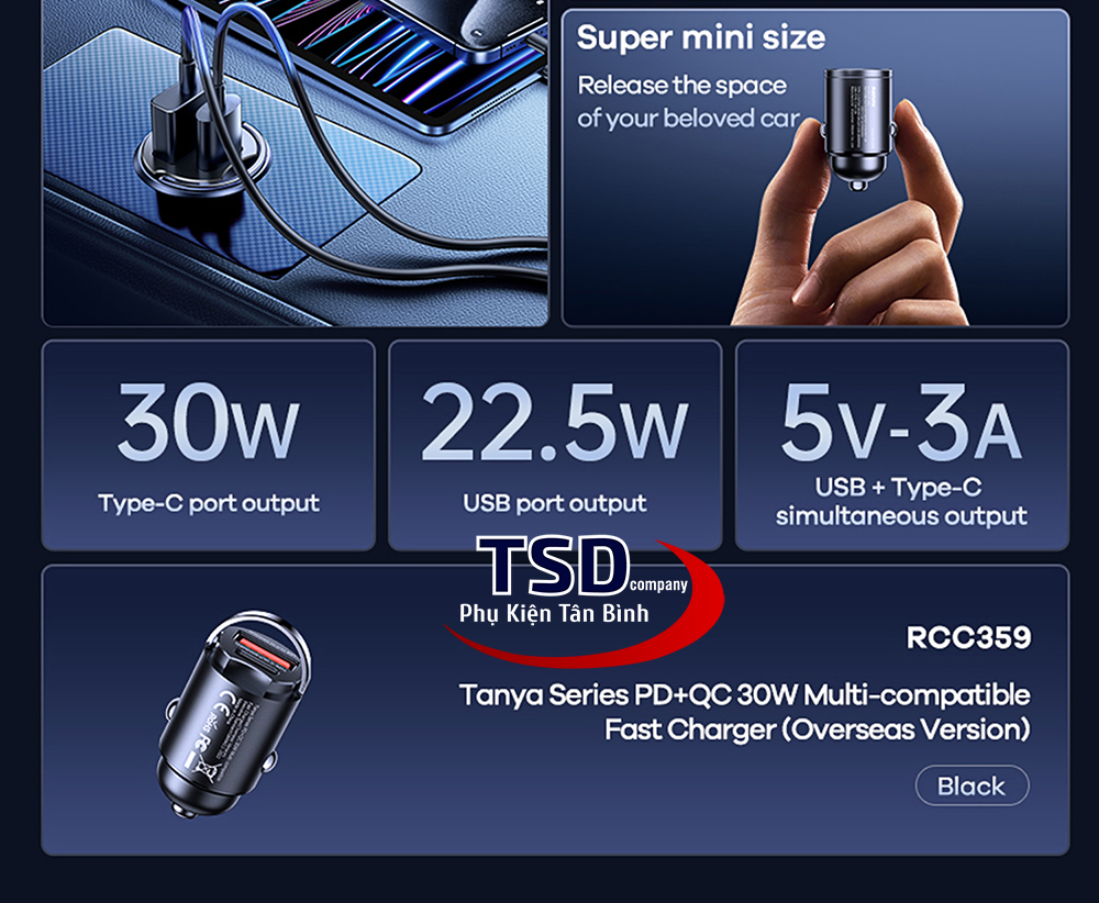 Tẩu sạc nhanh Remax RCC359 đến từ thương hiệu Hoco nổi tiếng, được trang bị 2 giao diện đầu ra hỗ trợ sạc 2 thiết bị cùng lúc. Công suất tối đa có thể lên tới 30W, giúp rút ngắn thời gian sạc. Bên cạnh đó sản phẩm được trang bị nhiều tính năng bảo vệ, đảm bảo an toàn cho người dùng.