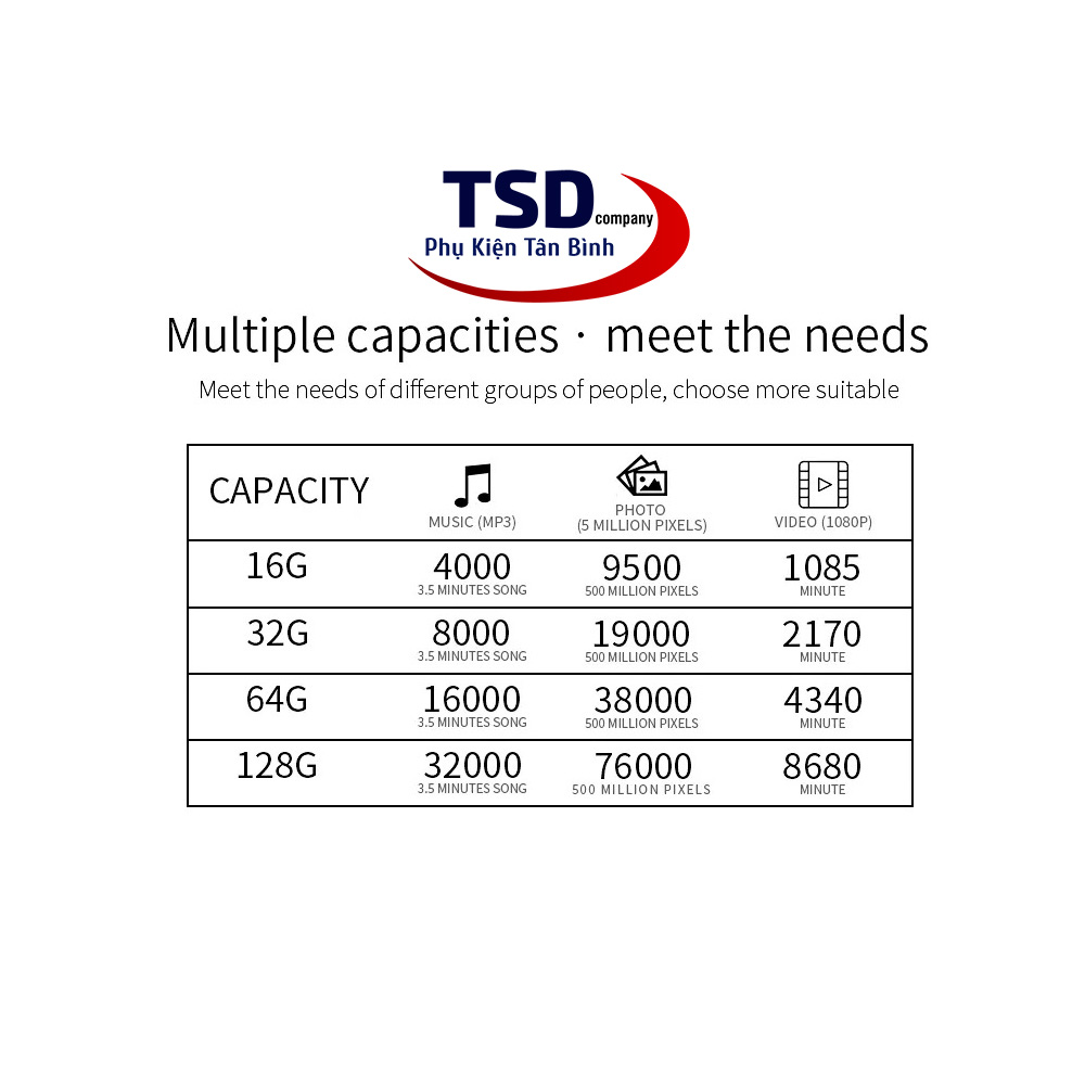 - Bộ sản phẩm gồm: 1 thẻ nhớ, hộp. ( dung lượng tùy chọn ).