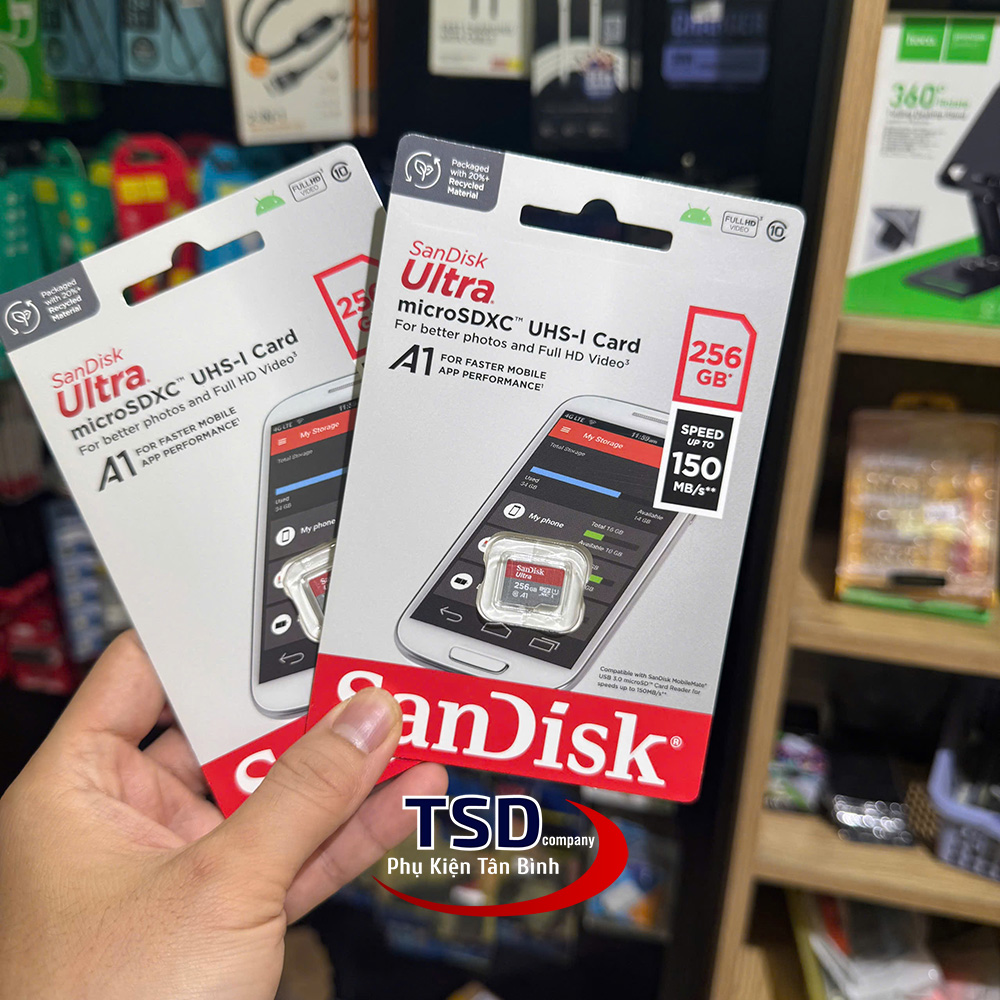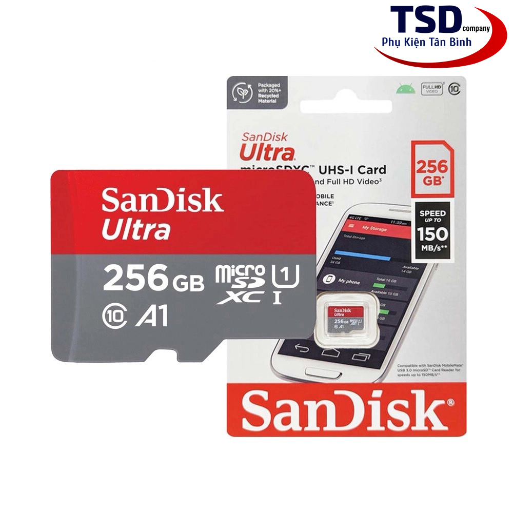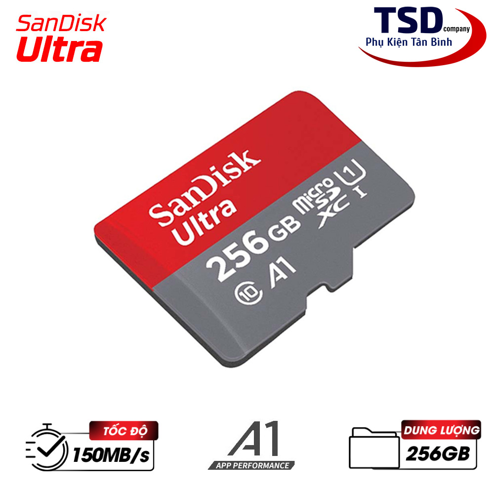 Thẻ nhớ MicroSD SanDisk Ultra cho phép bạn lưu giữ, truyền tải hình ảnh có độ phân giải cao và video Full HD trên điện thoại thông minh Android hoặc máy tính bảng của bạn. Với dung lượng lên đến 256GB, thẻ nhớ MicroSD SanDisk Ultra có thẻ lưu trữ rất nhiều album hình ảnh độ phân giải cao và quay video Full HD. Với tốc độ chuẩn A1 để quay video Full HD và tốc độ đọc lên đến 150MB/s để chuyển file cực nhanh. Thẻ nhớ MicroSD SanDisk Ultra A1 không thấm nước, chống thấm, chống nhiệt, chống sốc, chống tia x-ray, và chống từ trường.