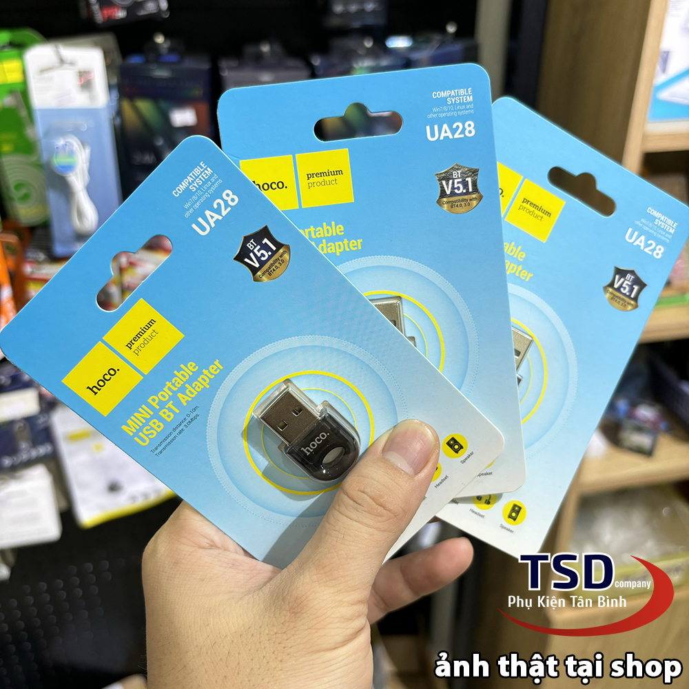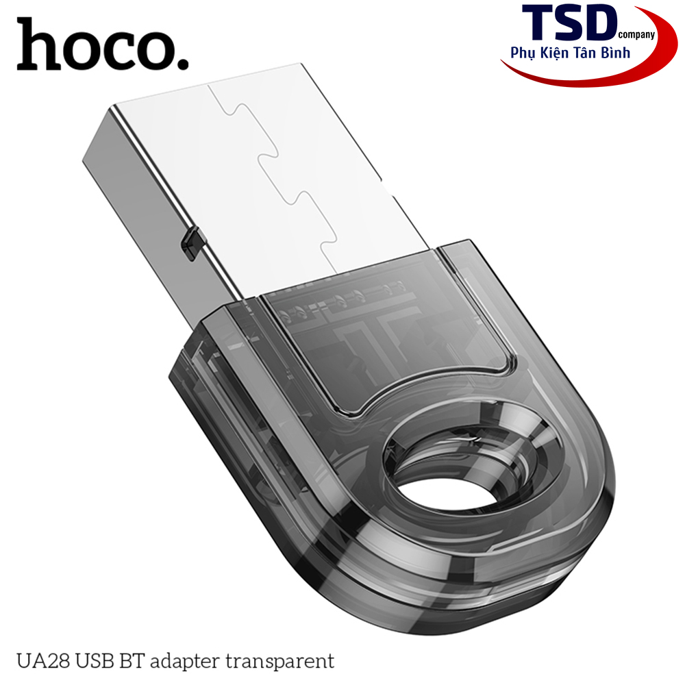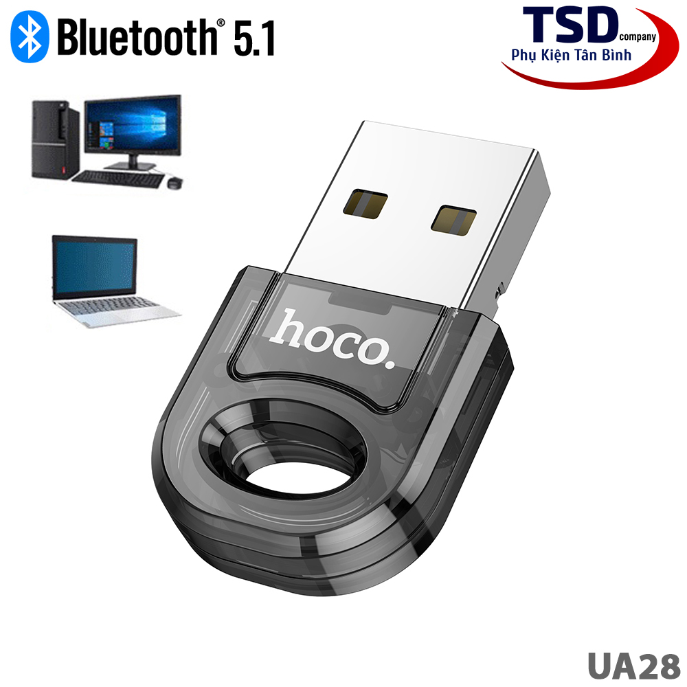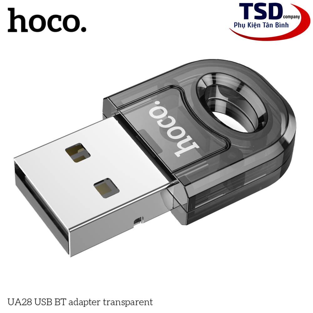 - USB Bluetooth 5.1 Hoco UA28 với thiết bị kết nối nhỏ gọn, nhẹ nhàng tiện lợi. Không còn các kết nối có dây rườm rà hay thủ tục chuyển dữ liệu với ứng dụng phức tạp, chỉ cần bạn kết nối thiết bị với là đã dễ dàng có bluetooth cho máy tính bàn, laptop của bạn.