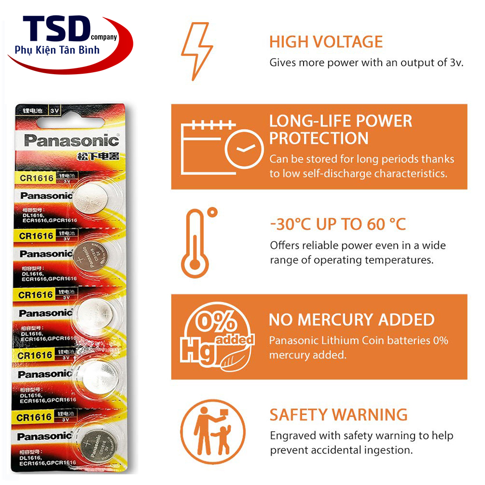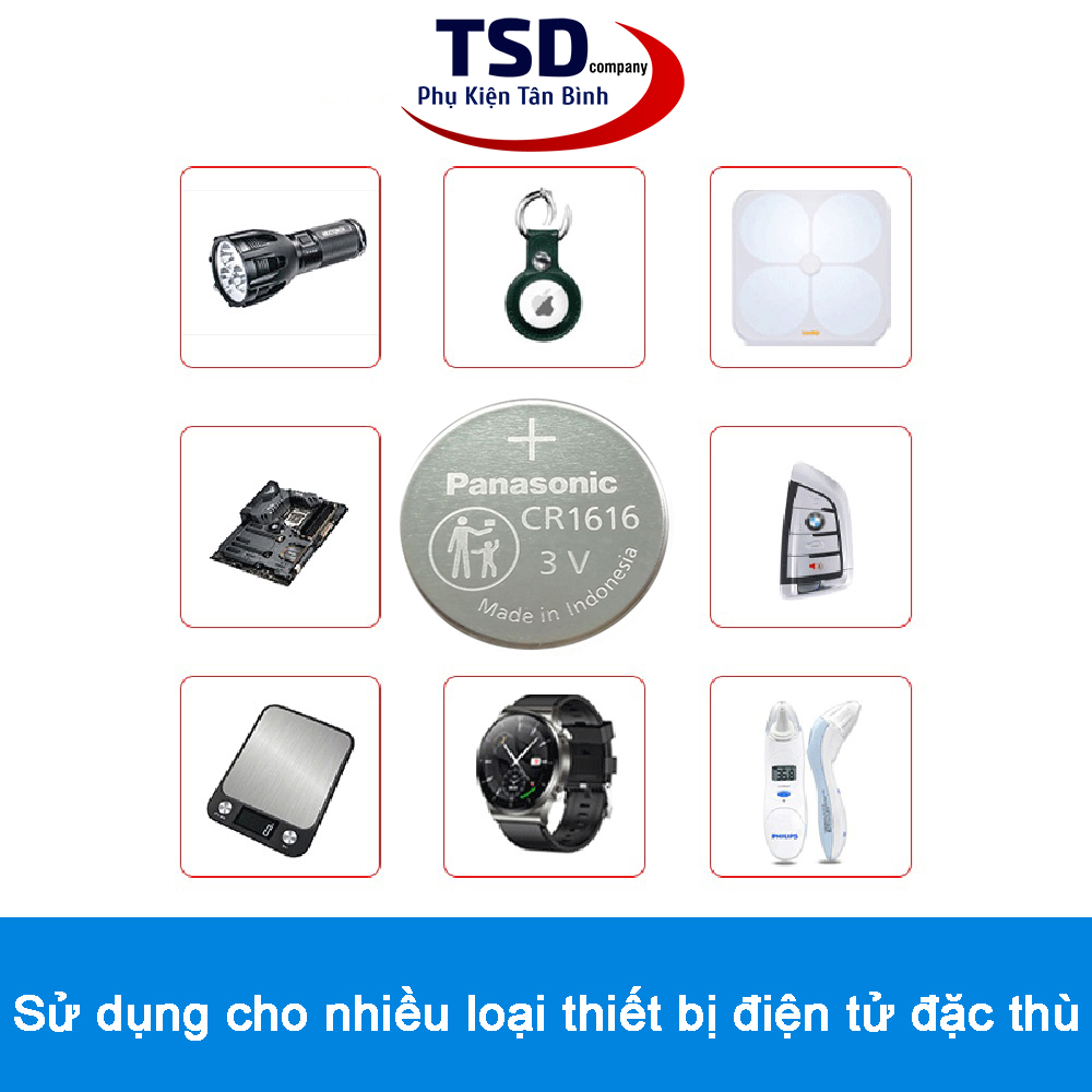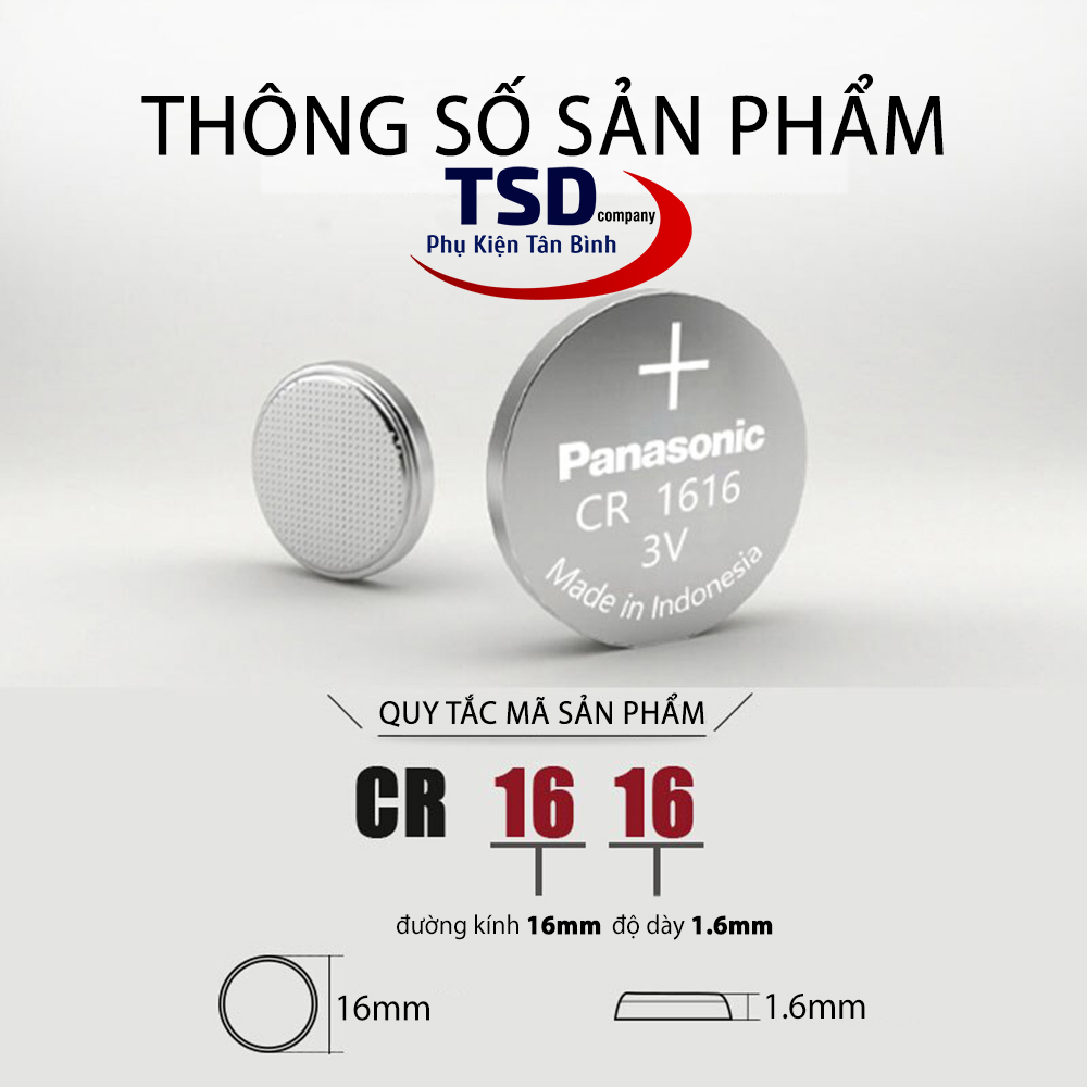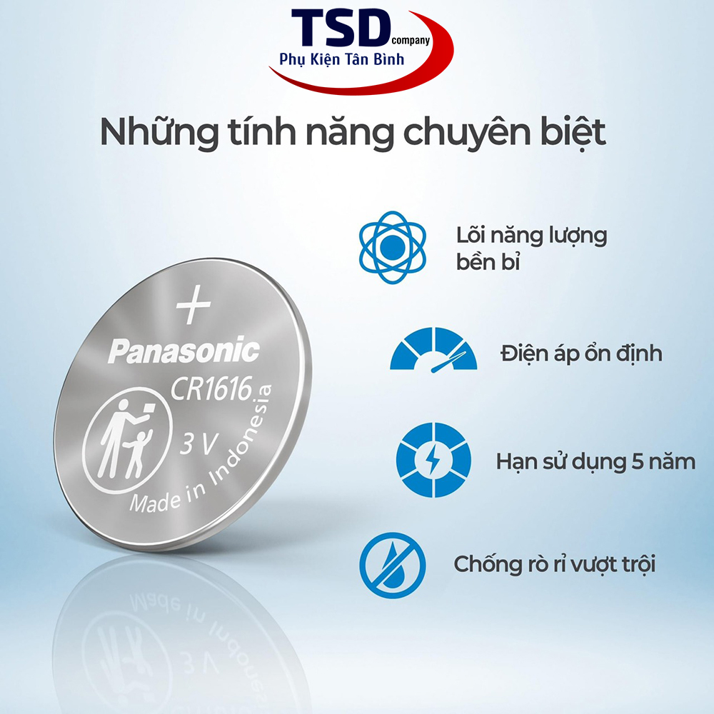- Pin Cr1616 panasonic có điện áp 3v tích trữ năng lượng bền lâu, an toàn cho thiết bị, thân thiện với môi trường.