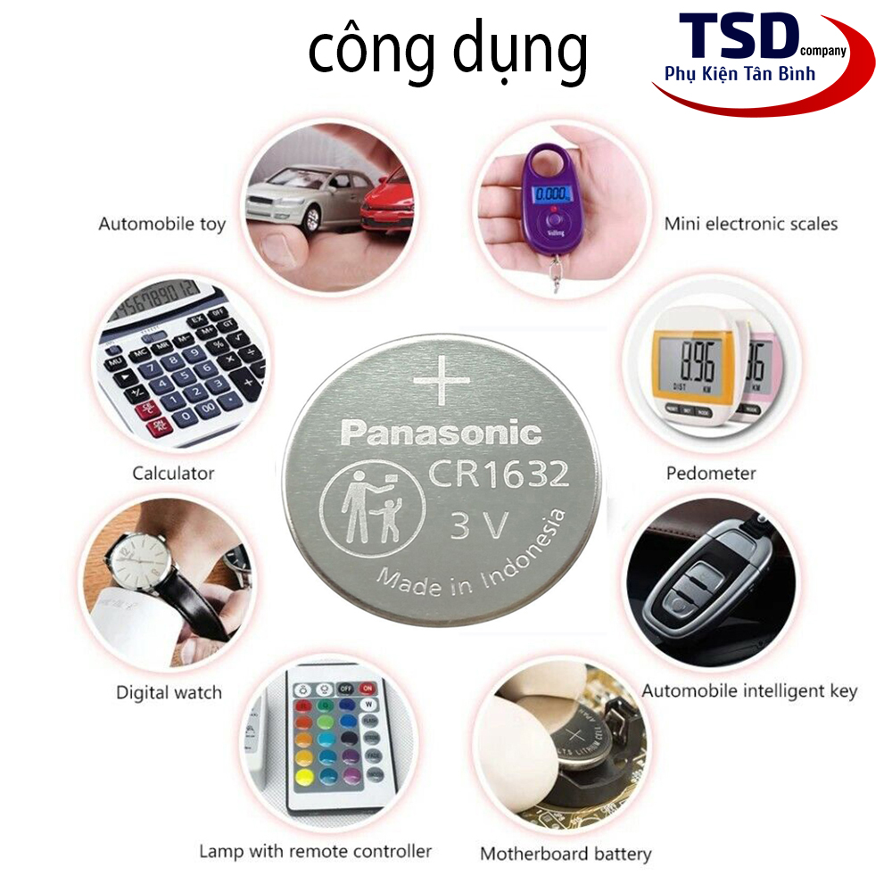 - Pin Cr1632 panasonic có điện áp 3v tích trữ năng lượng bền lâu, an toàn cho thiết bị, thân thiện với môi trường.